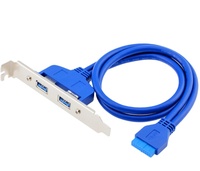 Wintek USB3.0เมนบอร์ด PC ขายึด20-PIN ถึง2 USB3.0สายต่อขยาย50ซม. สีฟ้า/ดำมีสินค้าในสต็อก